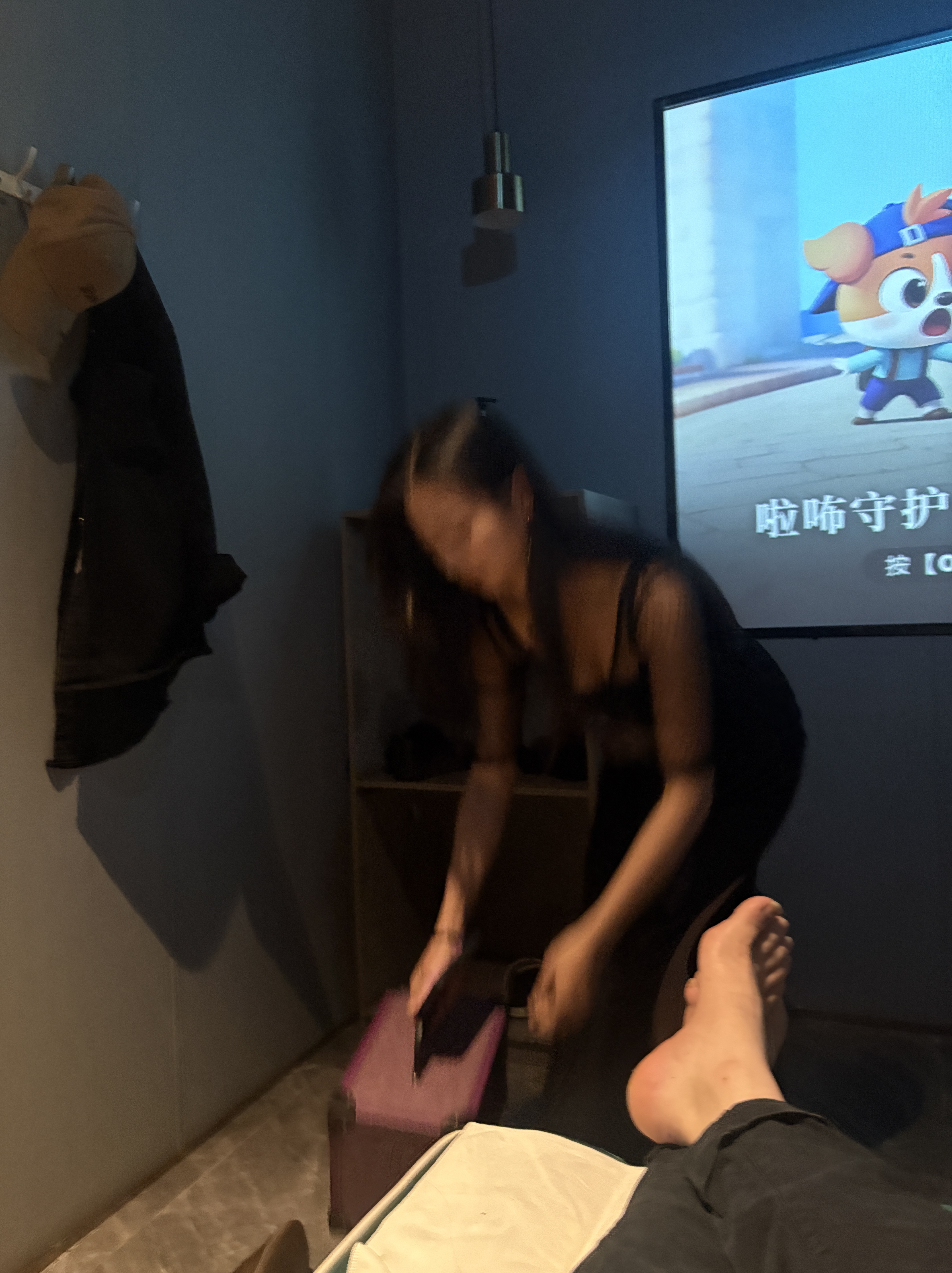 First thing you do is go to one of the rooms. these are laid out with a reclining massage chair in front of a tv. Take your shoes off and wait for the girls to come in. Most of the rooms have two chairs, meaning that if you come with a friend, you can both enjoy the first part of the massage together.